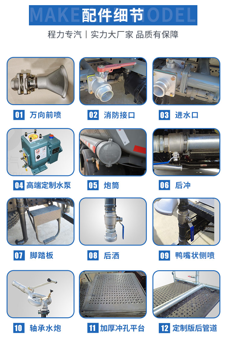 常規(guī)功能配置 | 前沖,后灑,側(cè)噴,灑水高炮,消防接口 |