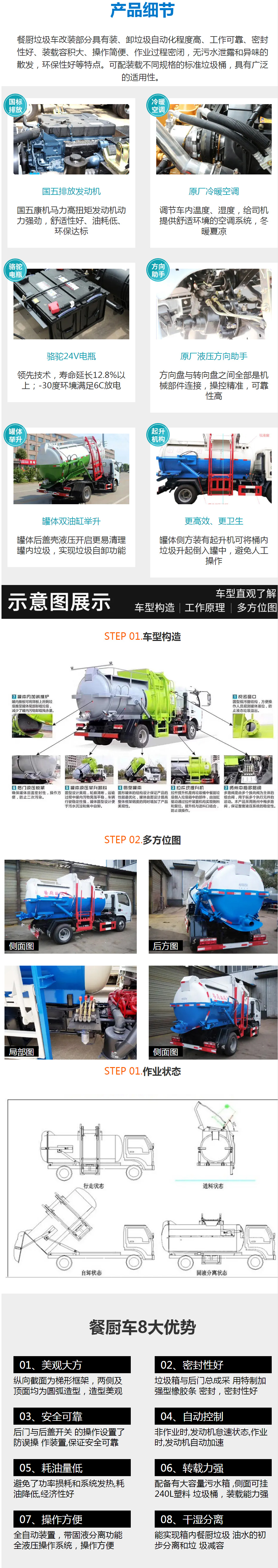 2、具有干濕分離功能 能實現(xiàn)箱內(nèi)餐廚垃圾油水的初步分離和垃圾減容,并配備有大容量污水箱,裝載能力強。