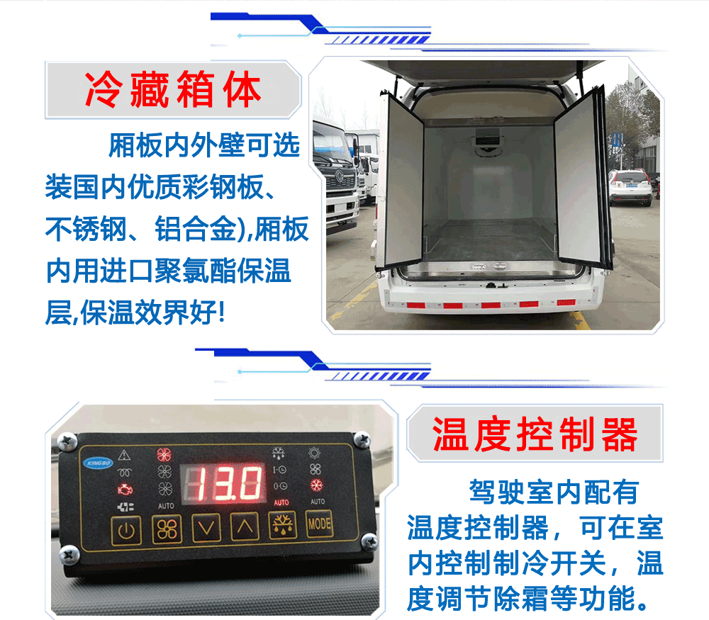 (1)制作工藝:廂體采用真空吸附、液壓吸附一體成型生產線制造,三明治復合粘接,保溫性能達到國家A級標準。