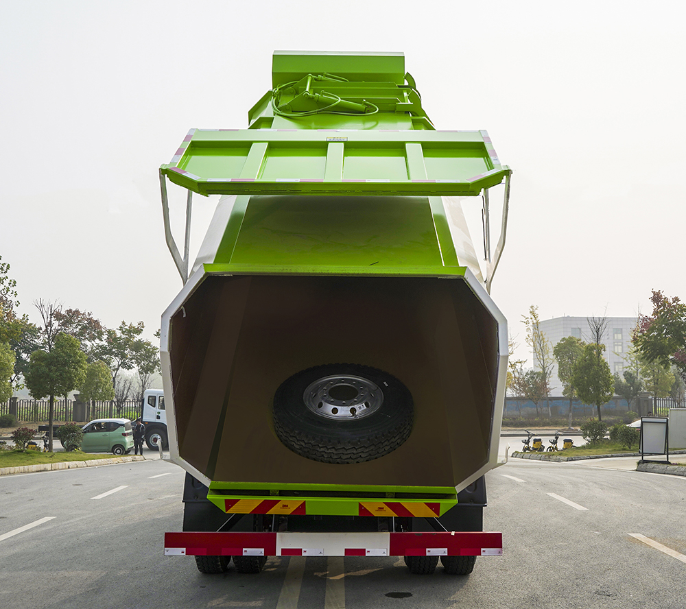 3.垃圾箱在制造上采用武鋼產(chǎn)優(yōu)質(zhì)鋼板,箱底板可加裝不銹鋼鋼板,保證介質(zhì)自卸時的平滑性, 同時箱底可根據(jù)地區(qū)的季節(jié)溫度情況加裝防冰凍設置,保障車輛的正常運行。